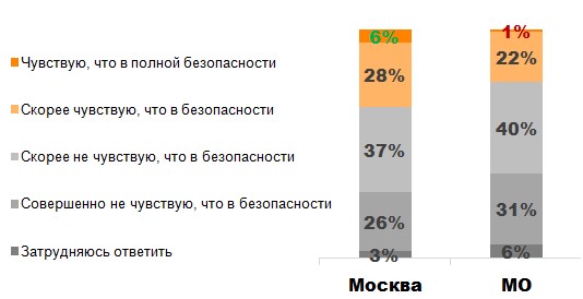 При этом пешеходы ощущают себя в городе менее защищенно, чем водители (около 40% пешеходов и 33% водителей). Большая часть аудитории не уверена в безопасности детей по дороге в школу, причем доля подобных ответов выше в Московской области (71%), чем в Москве (63%).