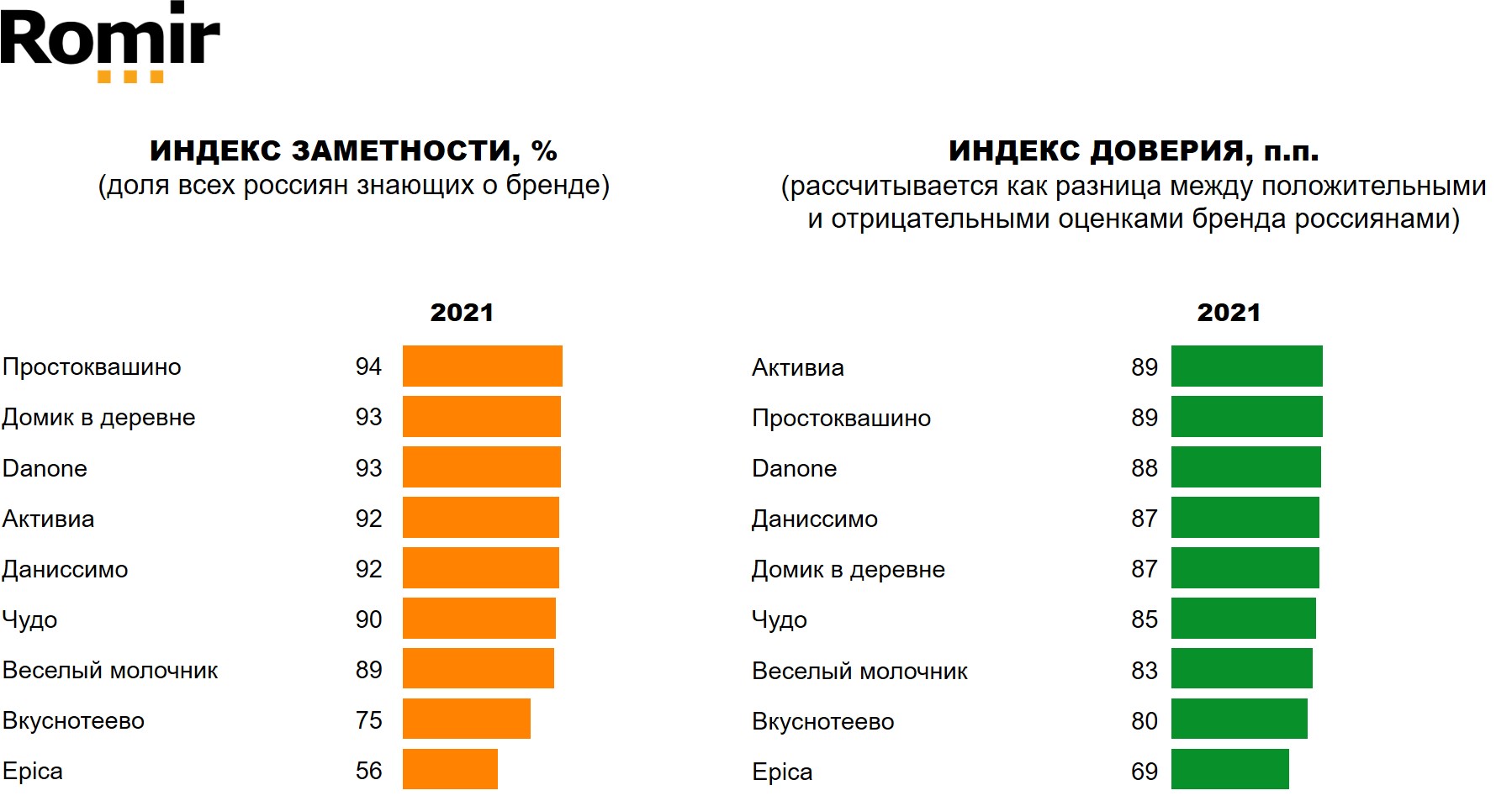 Ромир представляет уникальный индекс заметности и доверия брендам молочной продукции, присутствующим на территории России
