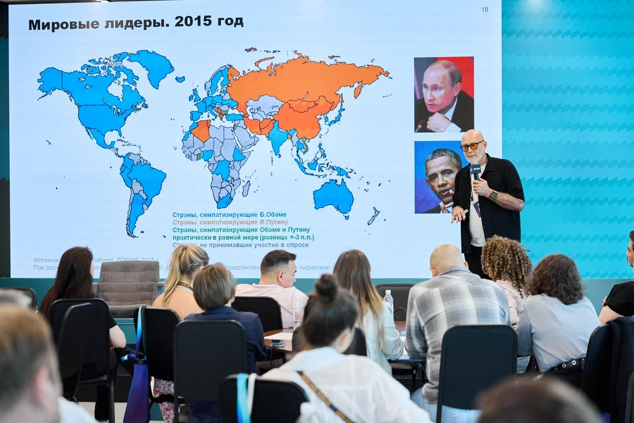 сказать, что в мире были и остаются как минимум только два всем известных лидера: Владимир Владимирович Путин, причем вне зависимости от занимаемой должности, и президент США, вне зависимости от фамилии», — Андрей Милёхин, социолог, президент "РОМИР" и бывший вице-президент Gallup International.
