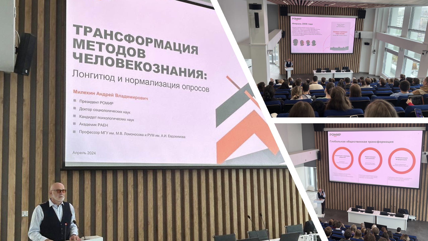 18 апреля в стенах РЭУ им. Плеханова состоялась встреча студентов университета с президентом РОМИР Андреем Милехиным. Его лекция для учащихся бакалавриата и магистратуры была посвящена теме «Вызовы человекоцентричности: трансформация инструментов социальных измерений».