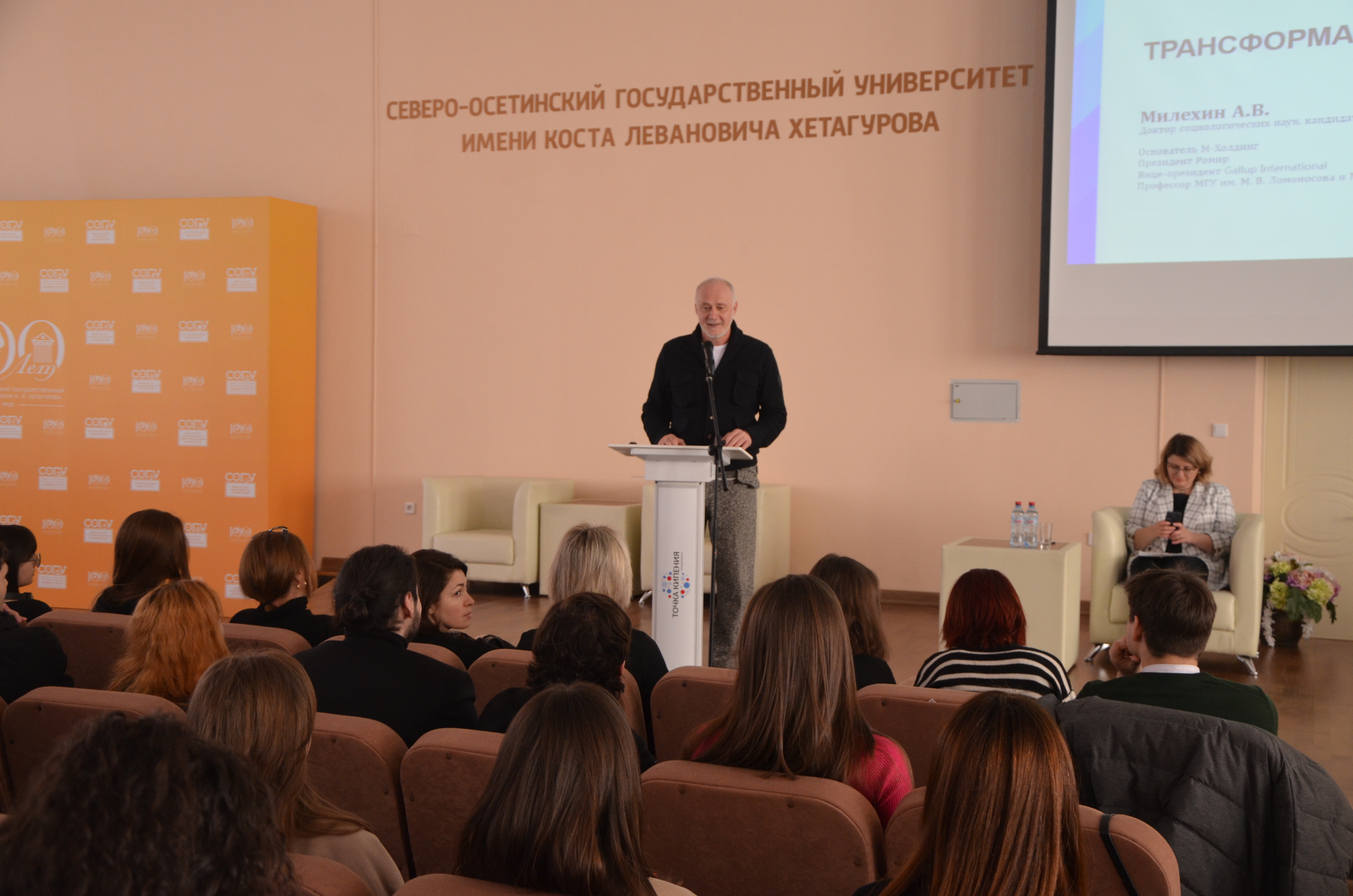 Лекция доктора социологических наук, профессора МГУ им. М. В. Ломоносова и МГМСУ им. А. И. Евдокимова, основателя М-Холдинг и президента исследовательского холдинга «Ромир» Андрея Милехина состоялась в Северо-Осетинском государственном университете им. К. Л. Хетагурова.