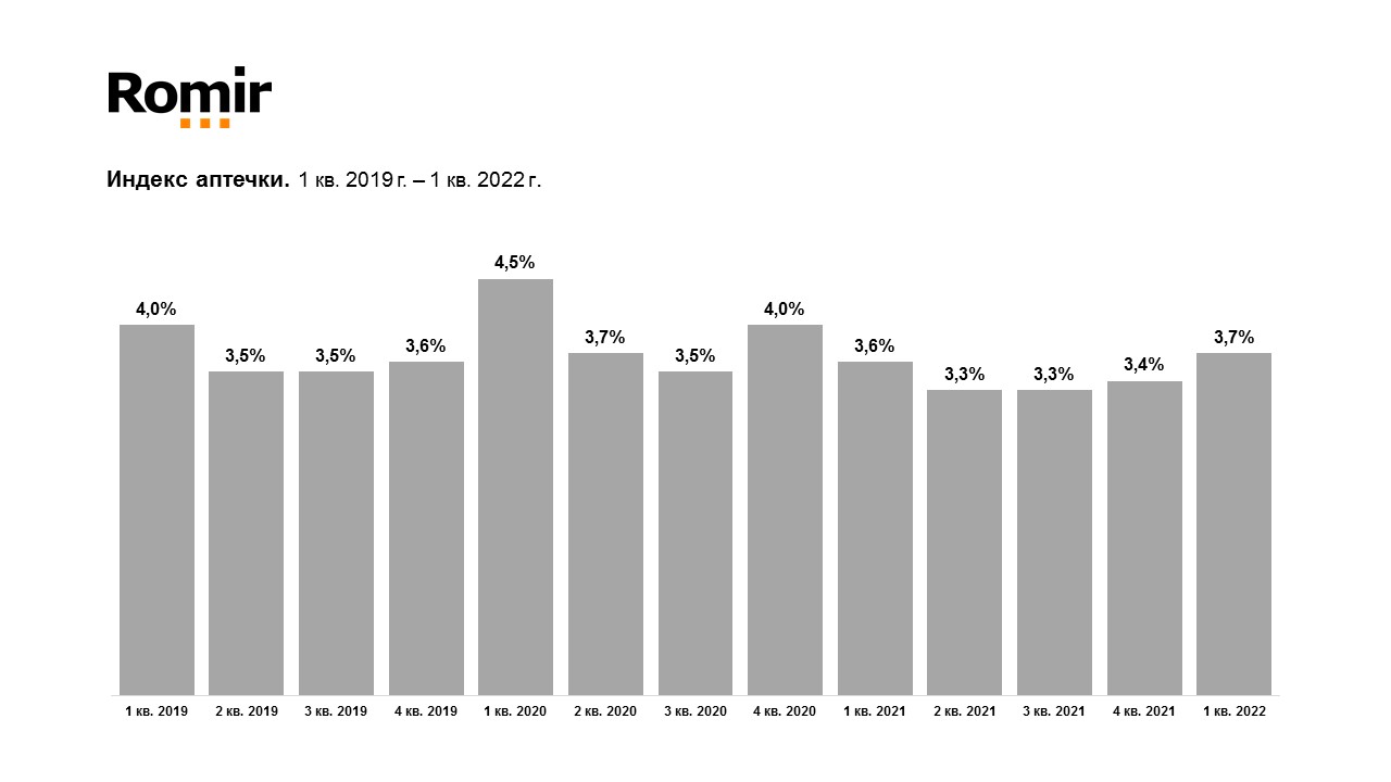 В первом квартале 2022 года Индекс аптечки значительно вырос до 3,7% впервые с начала прошлого года.
