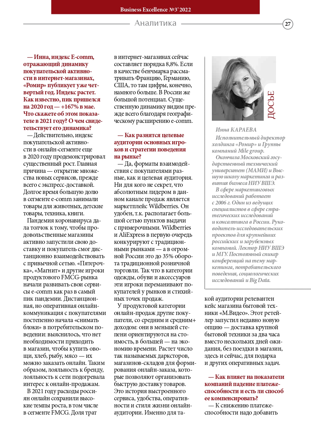 Журнал Business Excellence входит в первую десятку самых многотиражных деловых изданий в России.