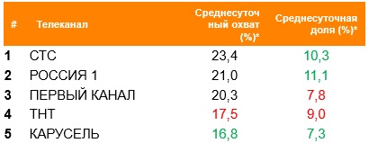 На прошлой неделе самым популярным телеканалом среди женщин с маленькими детьми стал «СТС», его среднесуточный охват среди этой аудитории составил 23,4%. На втором месте по популярности был телеканал «РОССИЯ 1» (21%), на третьем – «ПЕРВЫЙ КАНАЛ» (20,3%).