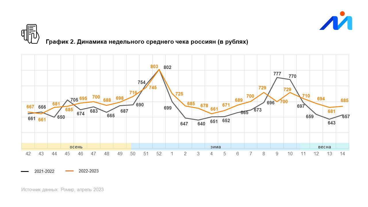 Исследовательский холдинг «Ромир» представляет данные по индексу недельных расходов (ИНР) и индексу недельного среднего чека (ИНСЧ).