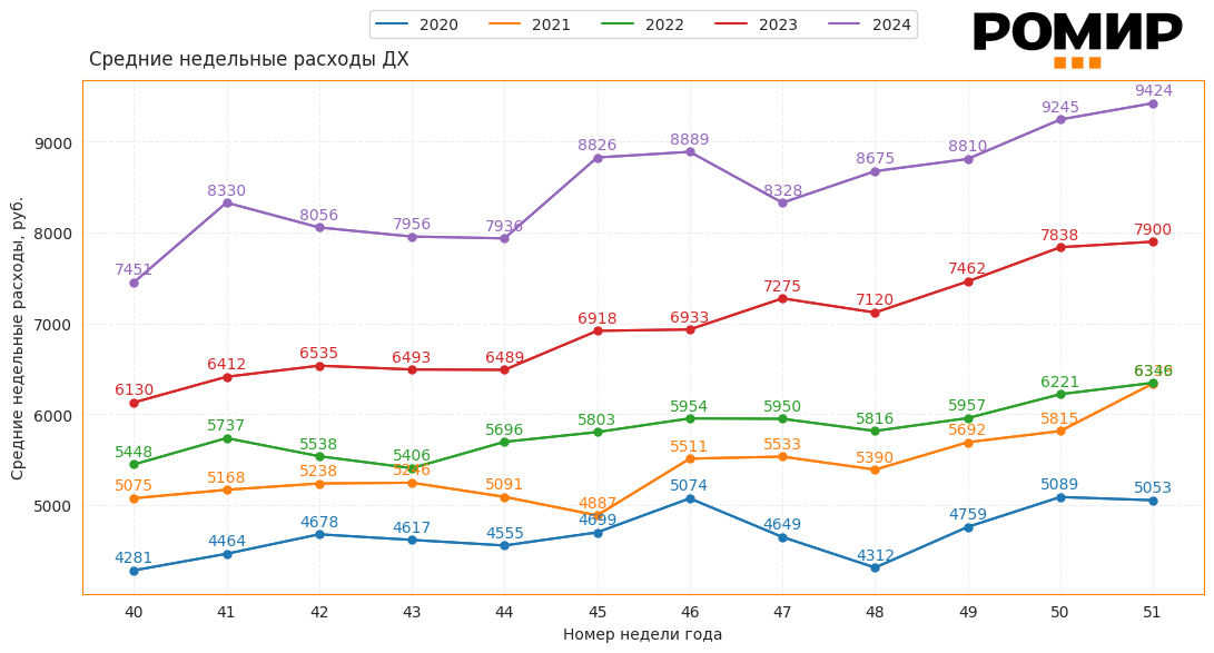 Диаграмма 1. Динамика Индекса недельных расходов, руб., 2020–2024 гг.