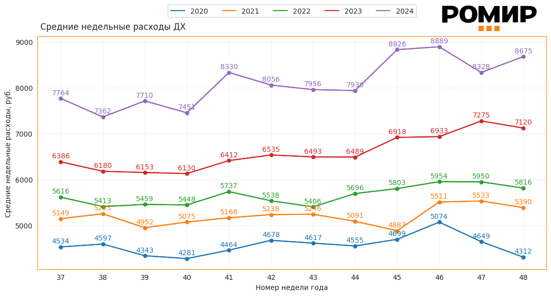Начало предпраздничного сезона, покупки подарков и продуктов к праздничному столу могли повлиять на рост недельных расходов. Также могло сыграть увеличение частоты покупок из-за акций и распродаж, которые стимулируют приобретение товаров в большем объеме, чем обычно.