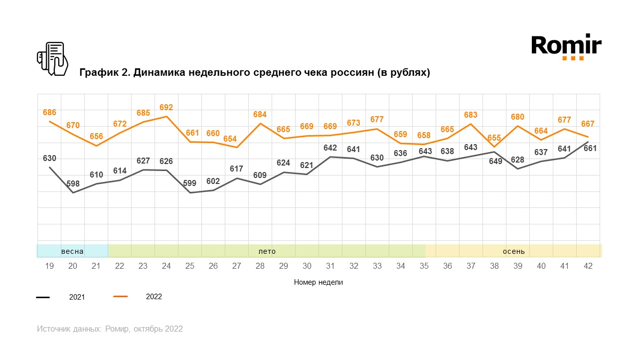 Исследовательский холдинг Ромир представляет данные по индексу недельных расходов (ИНР) и индексу недельного среднего чека (ИНСЧ).