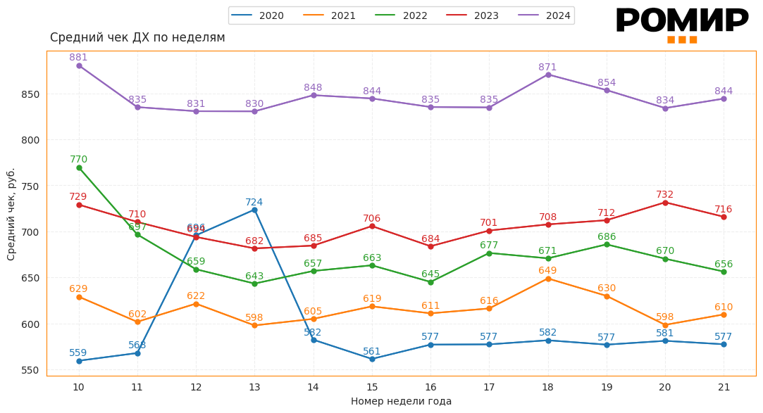 Тренд за предыдущие годы также демонстрирует аналогичную картину – в конце мая после праздничного пика нередко наблюдается стабилизация или небольшое снижение среднего чека. Это может быть частью повторяющегося сезонного паттерна покупательского поведения.