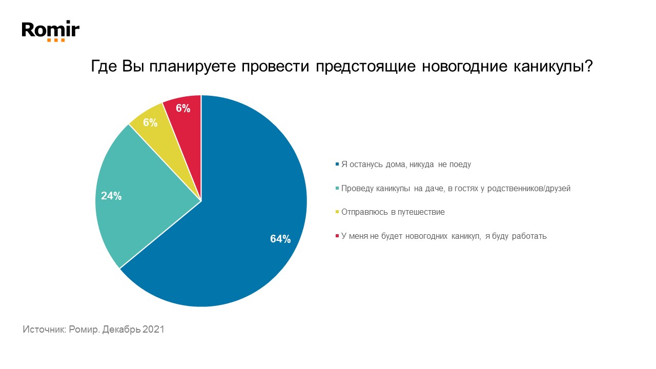 В рамках регулярного предновогоднего исследования Ромир узнал, где жители России хотят провести новогодние каникулы.