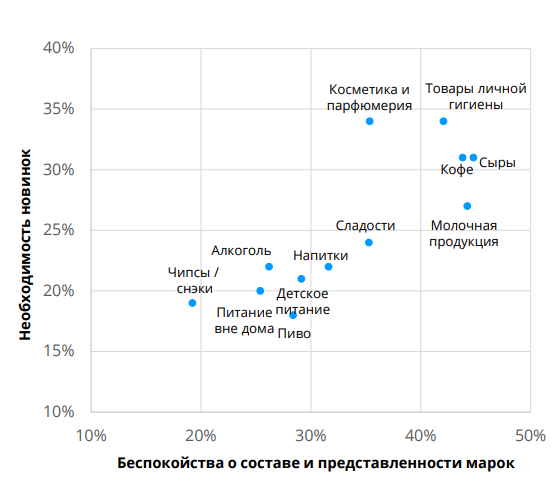 Если покупателю необходимо купить привычный бренд, но его нет в наличии, то чаще всего он выберет из других марок, которые видел раньше. Из незнакомых марок-новинок предпочитают: