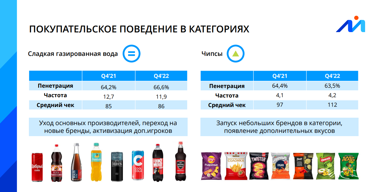 По сравнению с 2021 годом средняя частота покупок в 2022 году увеличилась на 6% с 34 до 36 раз, средний чек — на 12%, а средние траты в месяц — на 13% с 21 078 руб. до 23 853 руб.