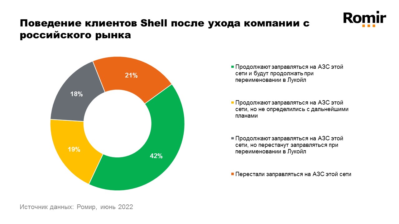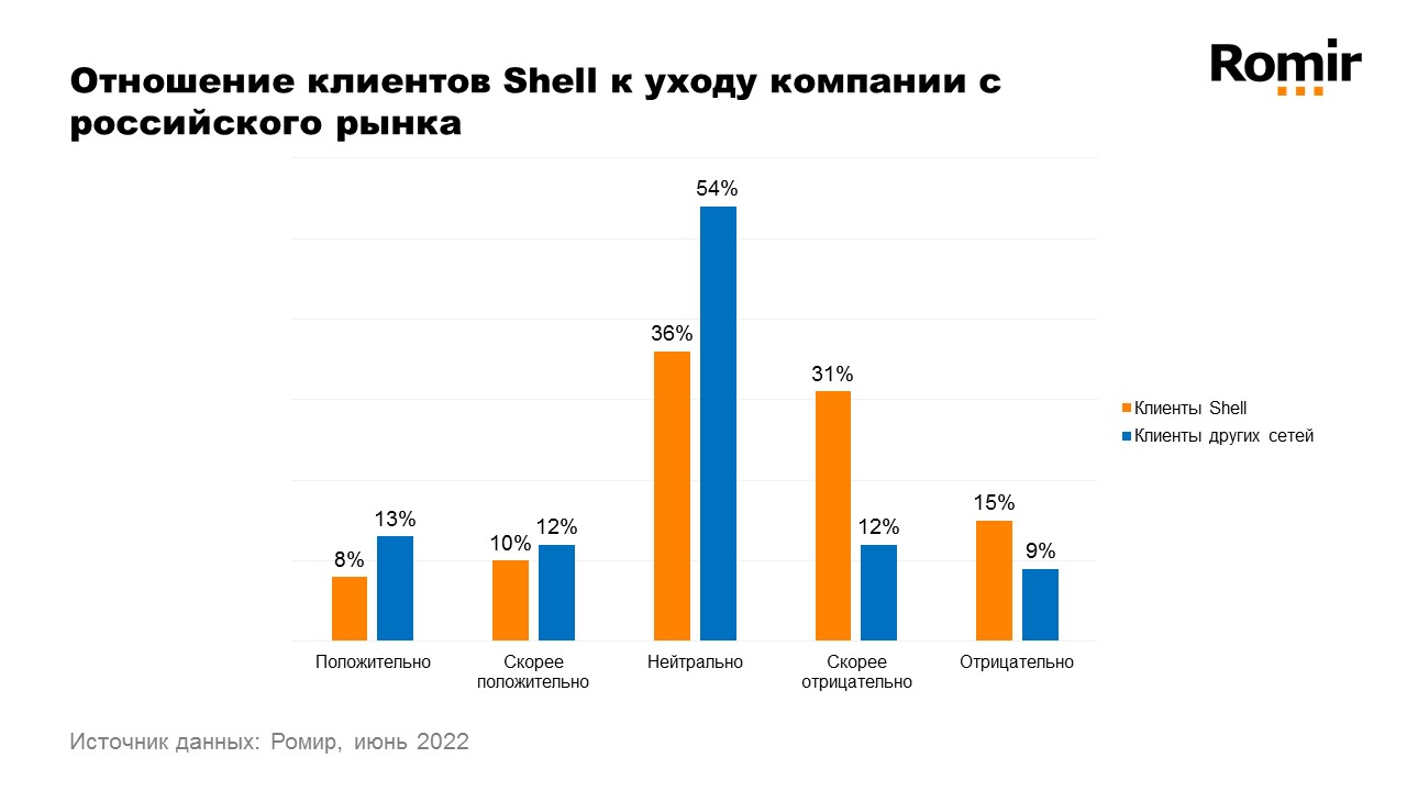 Так 45% клиентов Shell негативно отнеслись к уходу компании с рынка, что в два раза выше, чем среди клиентов других сетей АЗС.