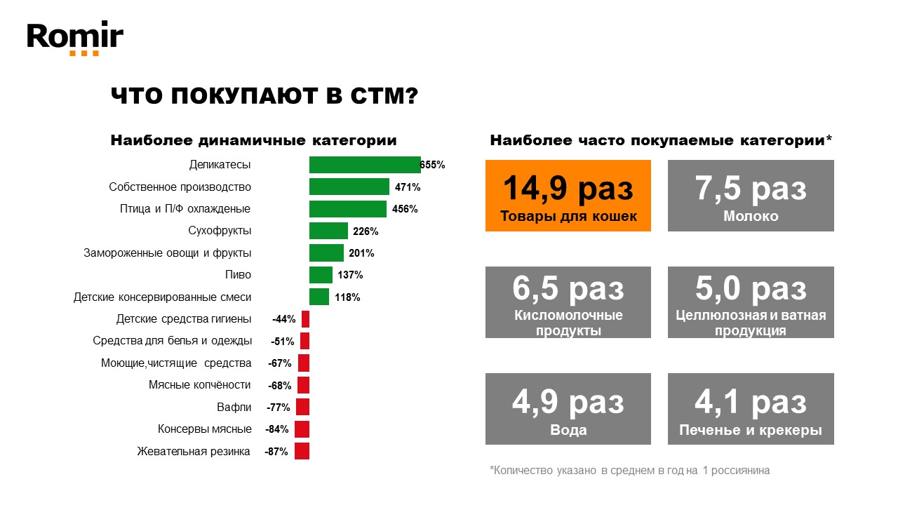 *Romir Consumer Scan Panel основана на данных потребления 40 000 россиян (15 000 домохозяйств), репрезентирующих покупательское и потребительское поведение жителей городов России с численностью 10 тысяч и более.