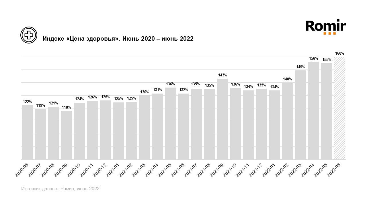 Исследовательский холдинг Ромир рассчитал индекс фармацевтического рынка «Цена здоровья», который отражает изменения цен на лекарственные препараты на основе фактических покупок россиян.