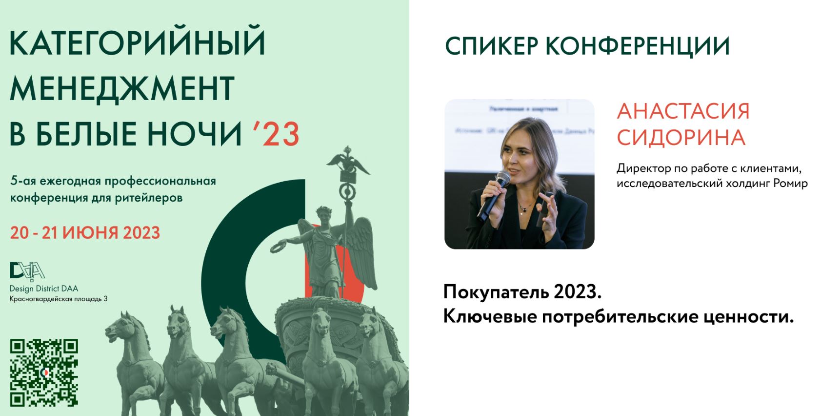 Директор по работе с клиентами Ромир Анастасия Сидорина примет участие в ежегодной профессиональной конференции "Категорийный менеджмент в Белые Ночи ‘23". Она поделится эксклюзивной аналитикой Ромир о ключевых потребительских ценностях, а также расскажет о том, как они могут быть определены и учтены в категорийном менеджменте.