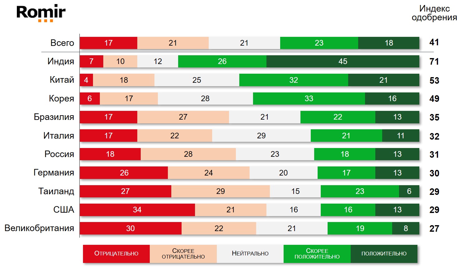- В целом в мире 41% респондентов положительно оценивают подобную идею.
