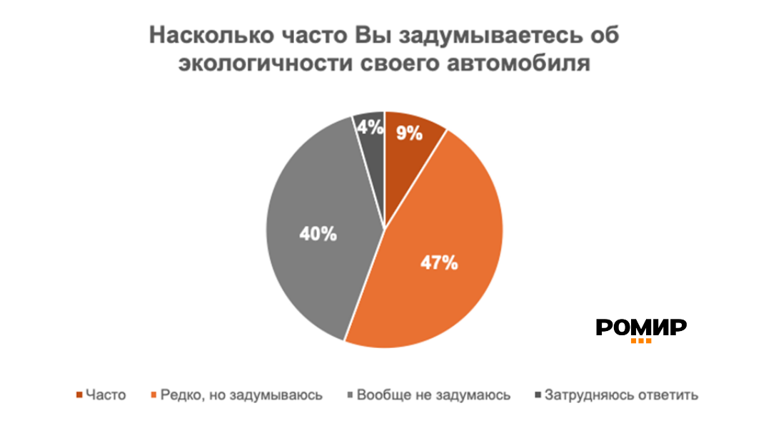 «Рост интереса к альтернативным видам двигателей и топлива часто связан с ростом экологической осознанности и бережным отношением к окружающей среде. Мы видим, что об экологичности автомобиля с каждым годом задумывается с той или иной частотой все больше россиян. В этом году их уже 56%. Решающим фактором при выборе автомобиля экологичность пока не стала, но внимание к этому аспекту явно нарастает», — рассказала старший директор по работе с клиентами направления «Авто» РОМИР Людмила Фукова.