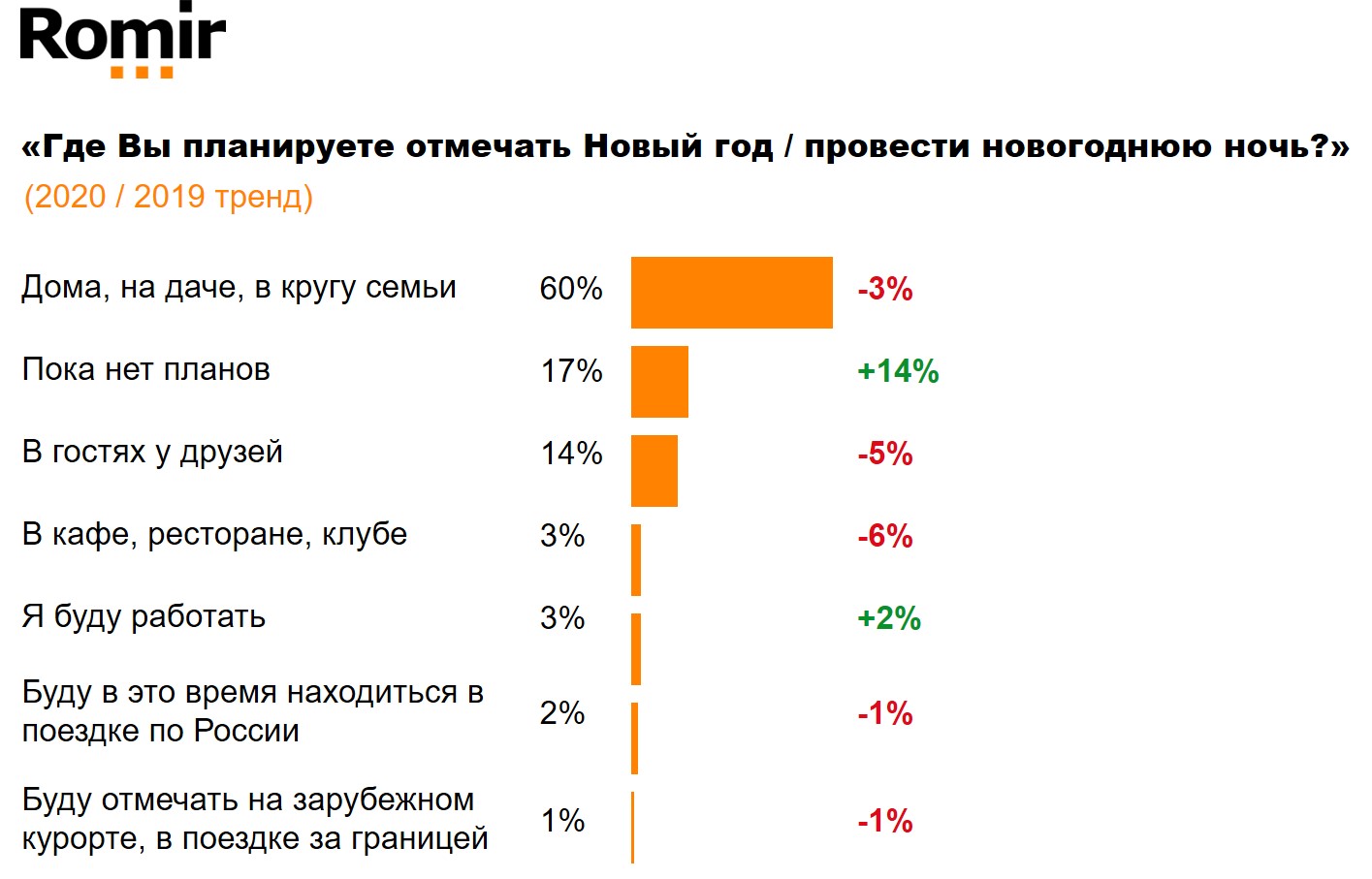 - 17% респондентов до сих пор не имеют планов как отметить Новый год.