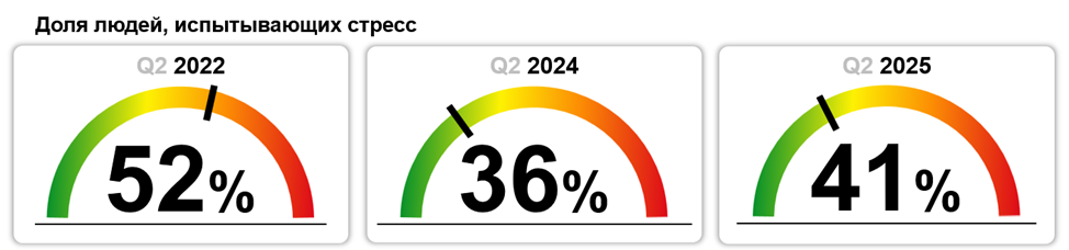 Пик с точки зрения стресса был зафиксирован в 2022 году – 52%, в 2024 году ситуация заметно улучшилась – 36%.