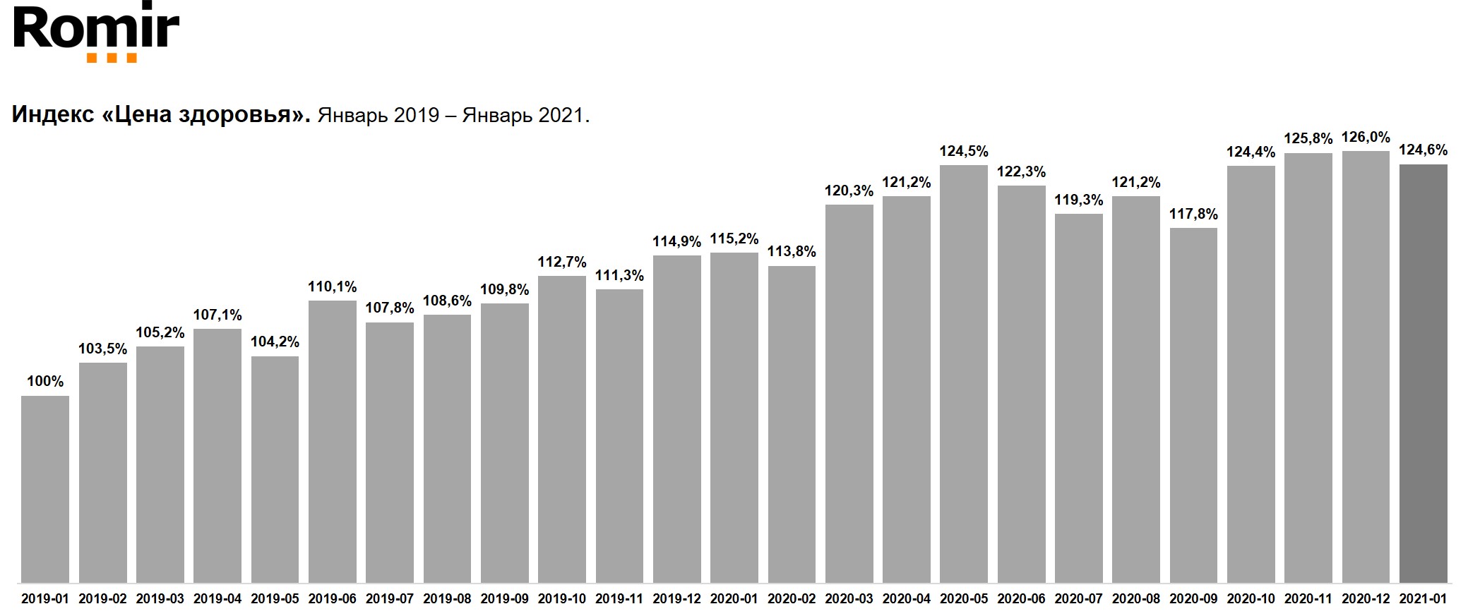 Исследовательский холдинг «Ромир» разработал методику расчета статистического индекса фармацевтического рынка – Индекса «Цена здоровья», который отражает реальные изменения цен лекарственных препаратов.