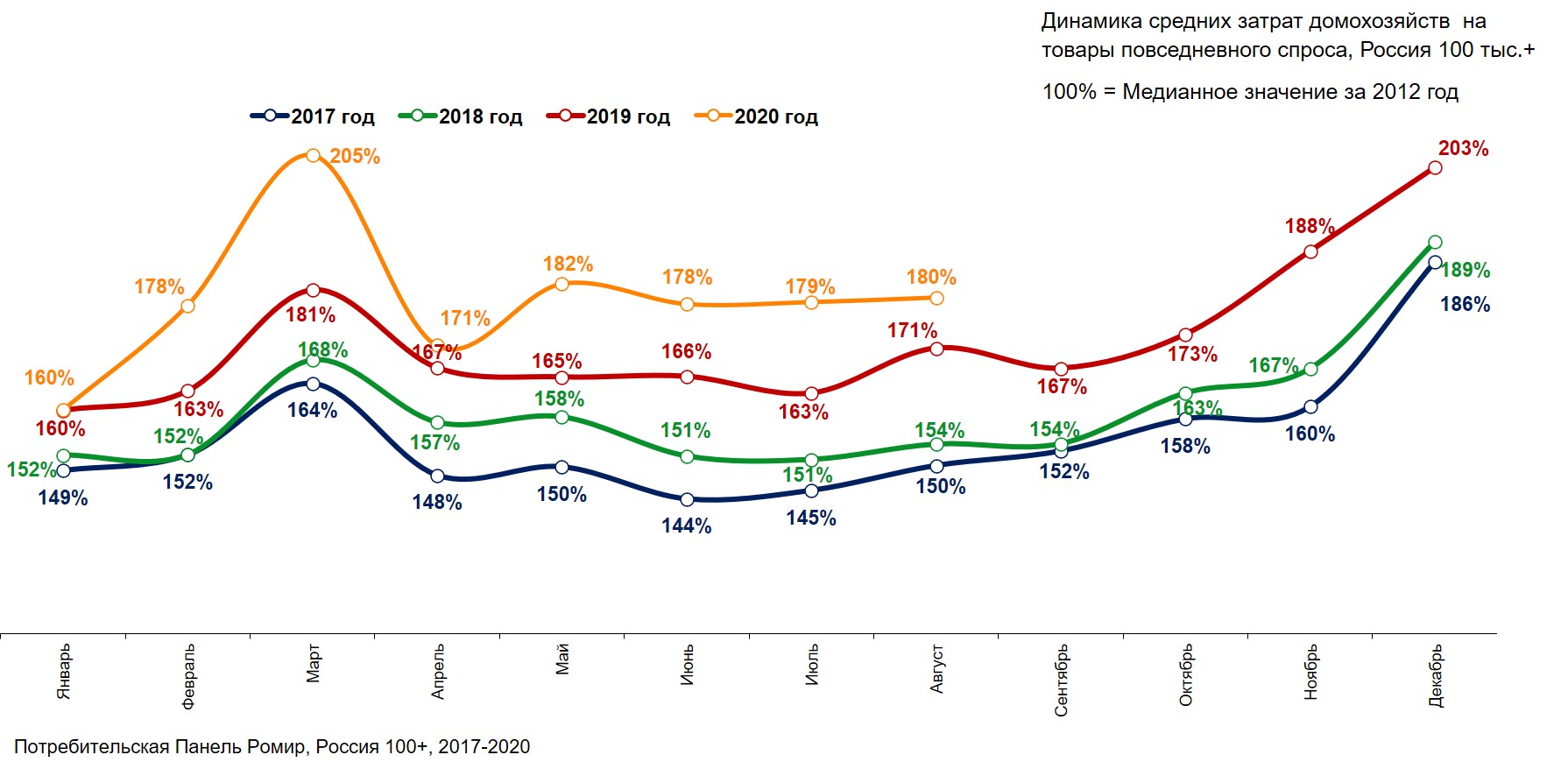 Темпы роста расходов против прошлого года выше, чем в предыдущие годы