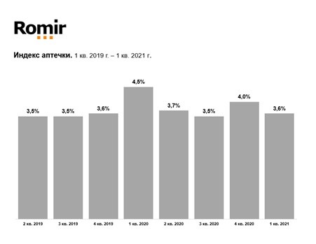 Исследовательский холдинг Ромир разработал методику расчета статистического индекса фармацевтического рынка – Индекса аптечки, который демонстрирует динамику доли затрат на медицинские товары.