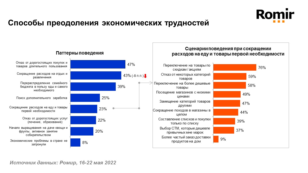 В рамках исследовательского проекта «М-Пульс»* эксперты Ромир проанализировали, как меняется стратегия экономии россиян.